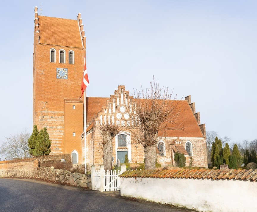 Kirken: Det kan være praktisk at sætte kørestolsbrugere og folk med rollator af ved lågen ud mod Sønderupvej - derfra er der fast belægning hele vejen op til våbenhuset.